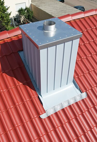 Ein Stehfalz sorgt für eine sichere Abteilung des Regens, von der Rückseite des Kamins auf die Dachplatten.